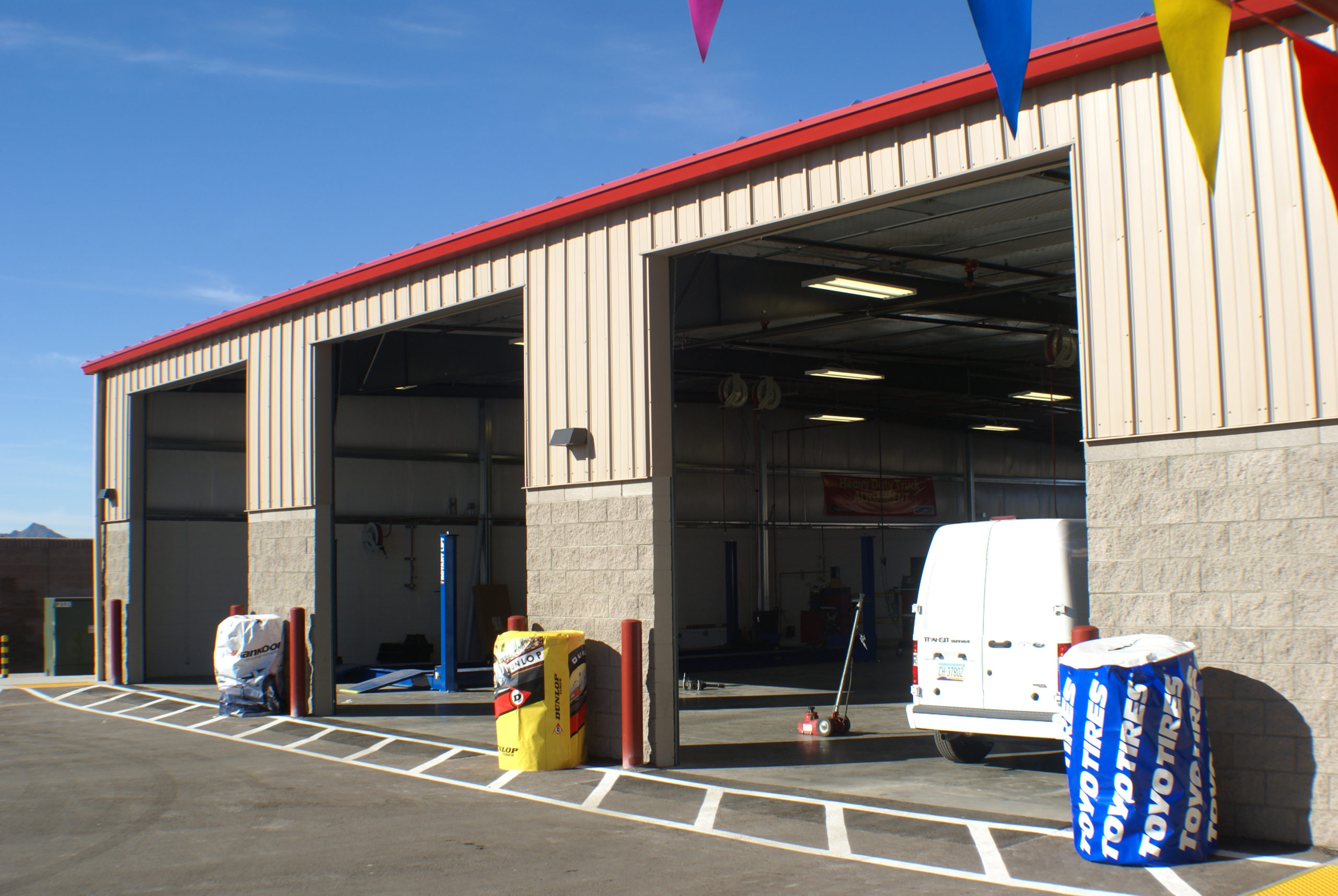 This 35,000 sq. ft. building features 7,500 sq. ft. of truck repair area and 2,600 sq. ft. of automotive repair area. The remainder of the building is used for tire storage, offices and a showroom. The building features a space frame front entry along with a split face block wainscot along with a mezzanine office component. Several accessories were used for safety and conservation including ridge vents, Sky-Web II® and VP’s PrisMAX™ skylights. Vinyl faced batts in the walls and roof, 14 seer HVAC equipment and a lighting system were also used for energy efficiency.